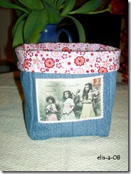 Jeg driver og småsyr litt. Først en Liv-Toril-oppbevaringspose. Den er sendt til Lappesola som takk for hjelp med teppet.